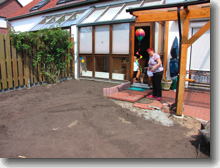 …der Rasenmäher wurde verschenkt und eine kleine "Rotwein-am-Abend"- Terrasse dafür eingefügt… |