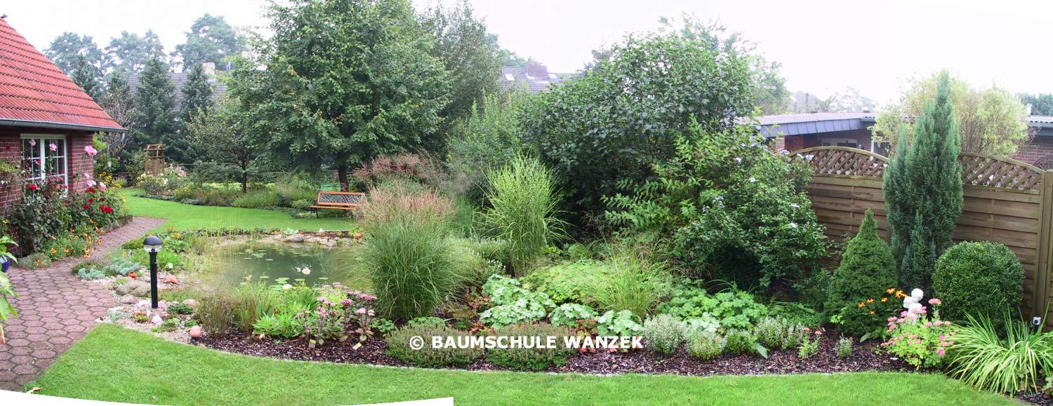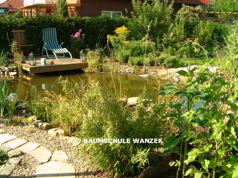 1) Ein Gartenteich, der bereits im 1. Sommer aussieht, als wäre er schon immer als natürlicher Teich im Garten gewesen. Nirgends ist die Folie zu sehen oder muss wegen "Baufehlern" mit Böschungsmatten oder besandeter Folie kaschiert werden.